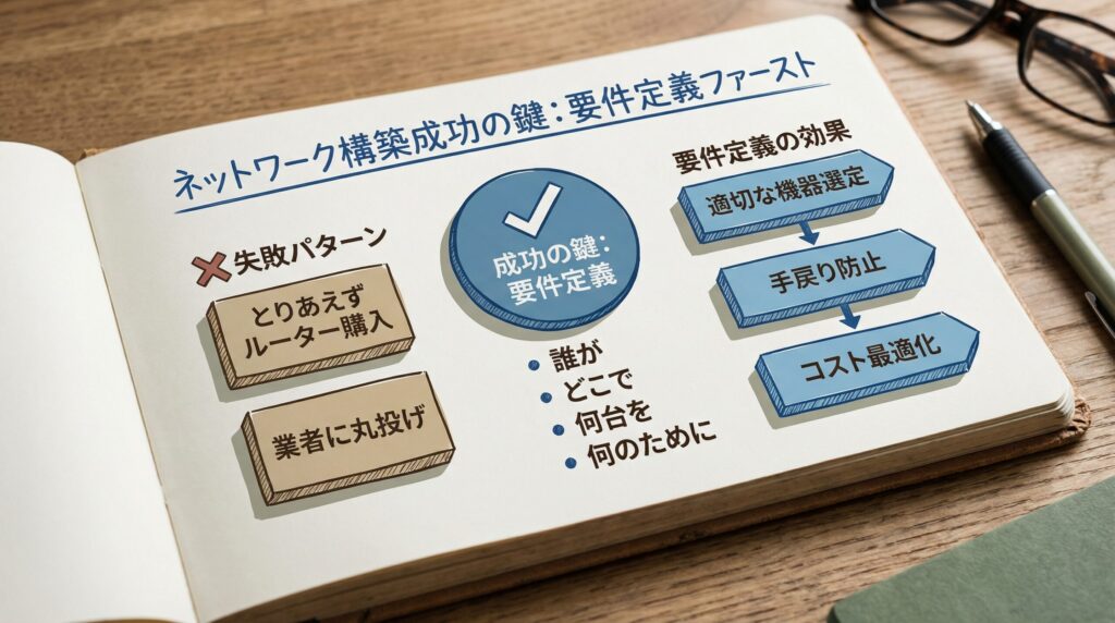 1. 結論:ネットワーク構築の成功は「機器選び」ではなく「要件定義」で決まる