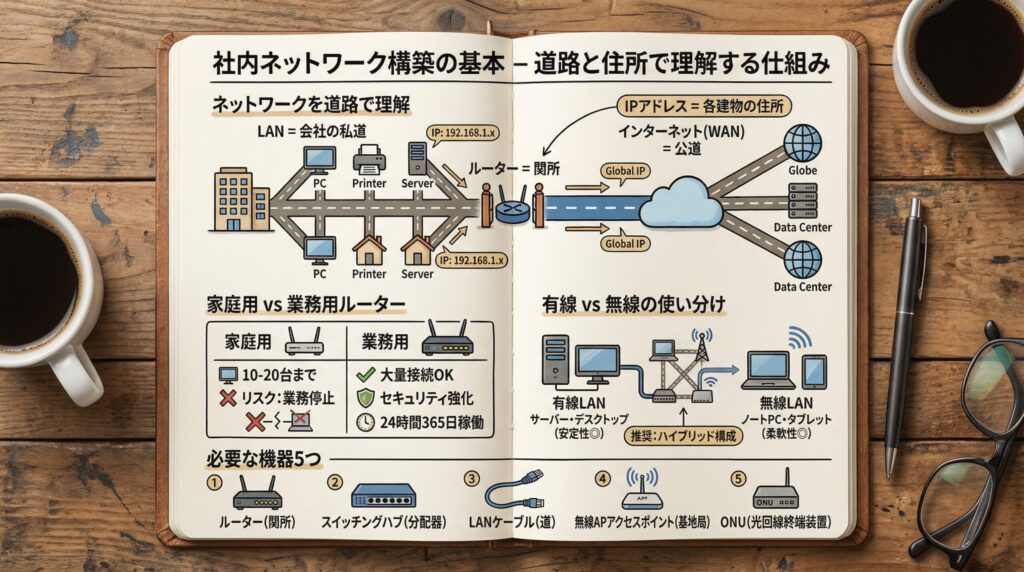 2. そもそも「社内ネットワーク構築」とは?「道路」と「住所」で理解する仕組み