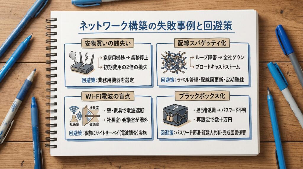 実は、ネットワーク構築で失敗する企業のパターンには共通点があるんです。